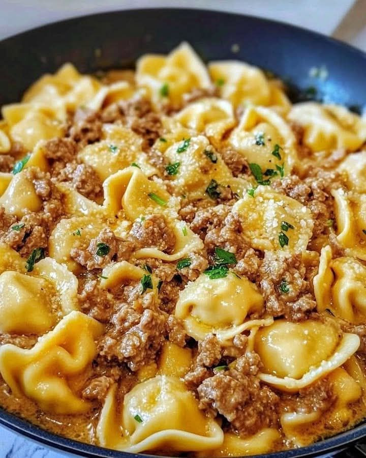 Cremige Tortellini-Pfanne mit Hackfleisch