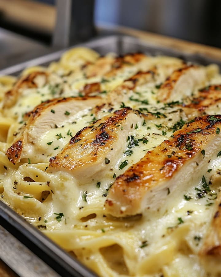 Zutaten:– 230 g Maccheroni– 2 EL Olivenöl– 3 Knoblauchzehen, gehackt– 2 Hähnchenbrustfilets, ohne Knochen und Haut– 1 rote Paprika, gewürfelt– 1 gelbe Paprika, gewürfelt– 240 ml Sahne– 1 Tasse geriebener Parmesan– 1 TL italienische Kräuter– Salz und Pfeffer nach Geschmack– Frische Petersilie, gehackt (zum Garnieren)Zubereitung: siehe Fortsetzung auf der nächsten Seite