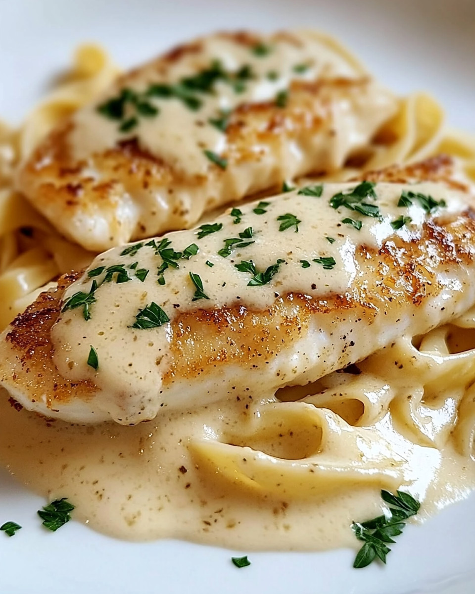 Crispy Golden Parmesan Chicken über Silky Garlic Cream Pasta