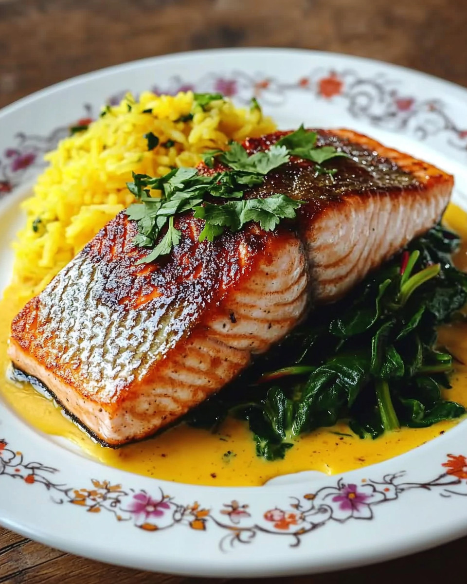 Zutaten:– 2 Lachsfilets– 200 g frischer Spinat– 200 ml Sahne– 2 Knoblauchzehen (gehackt)– 1 Zwiebel (fein gewürfelt)– 2 EL Honig– 2 EL Zitronensaft– 2 EL Butter– Salz– Pfeffer– 200 g Reis– 1 Prise Safran oder KurkumaZubereitung: siehe Fortsetzung auf der nächsten Seite