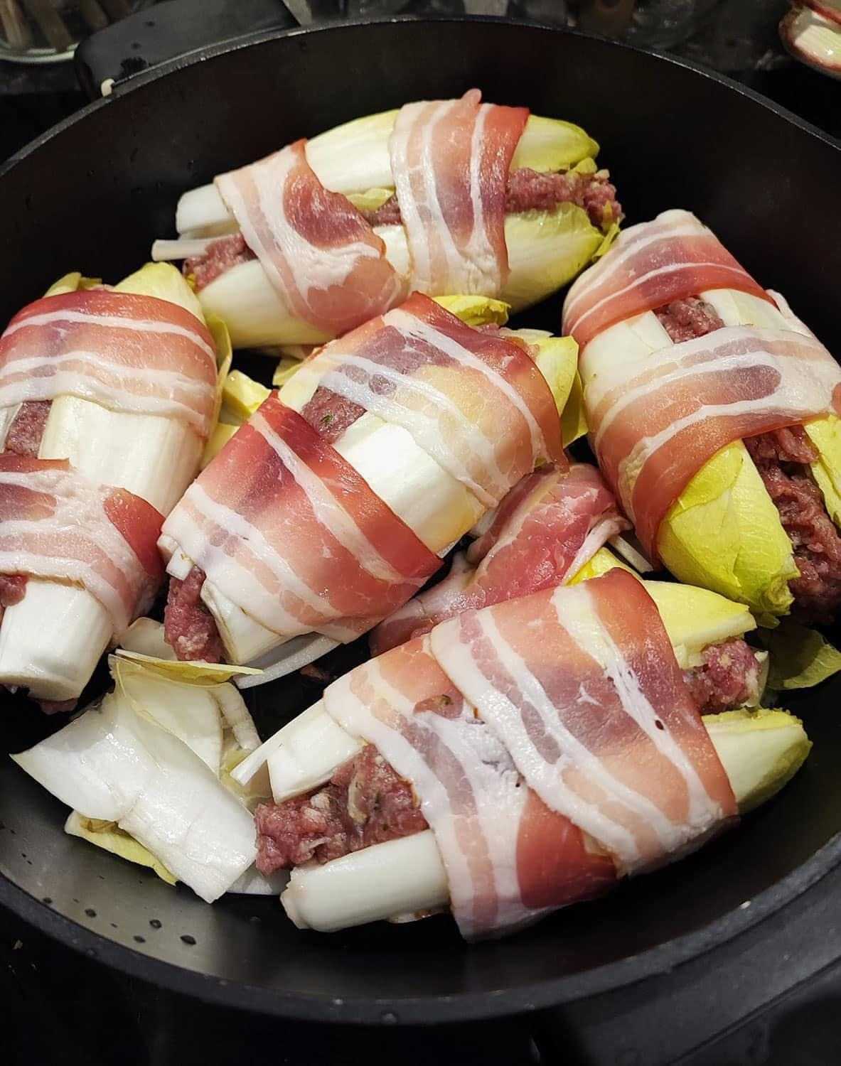 Chicorée gefüllt mit Speck und Hackfleisch