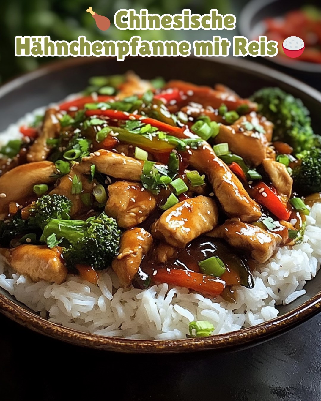 Frisch, würzig und voller Geschmack! Dieses schnelle asiatische Gericht wird mit zartem Hähnchen, knackigem Gemüse und duftigem Reis serviert. ![]()
