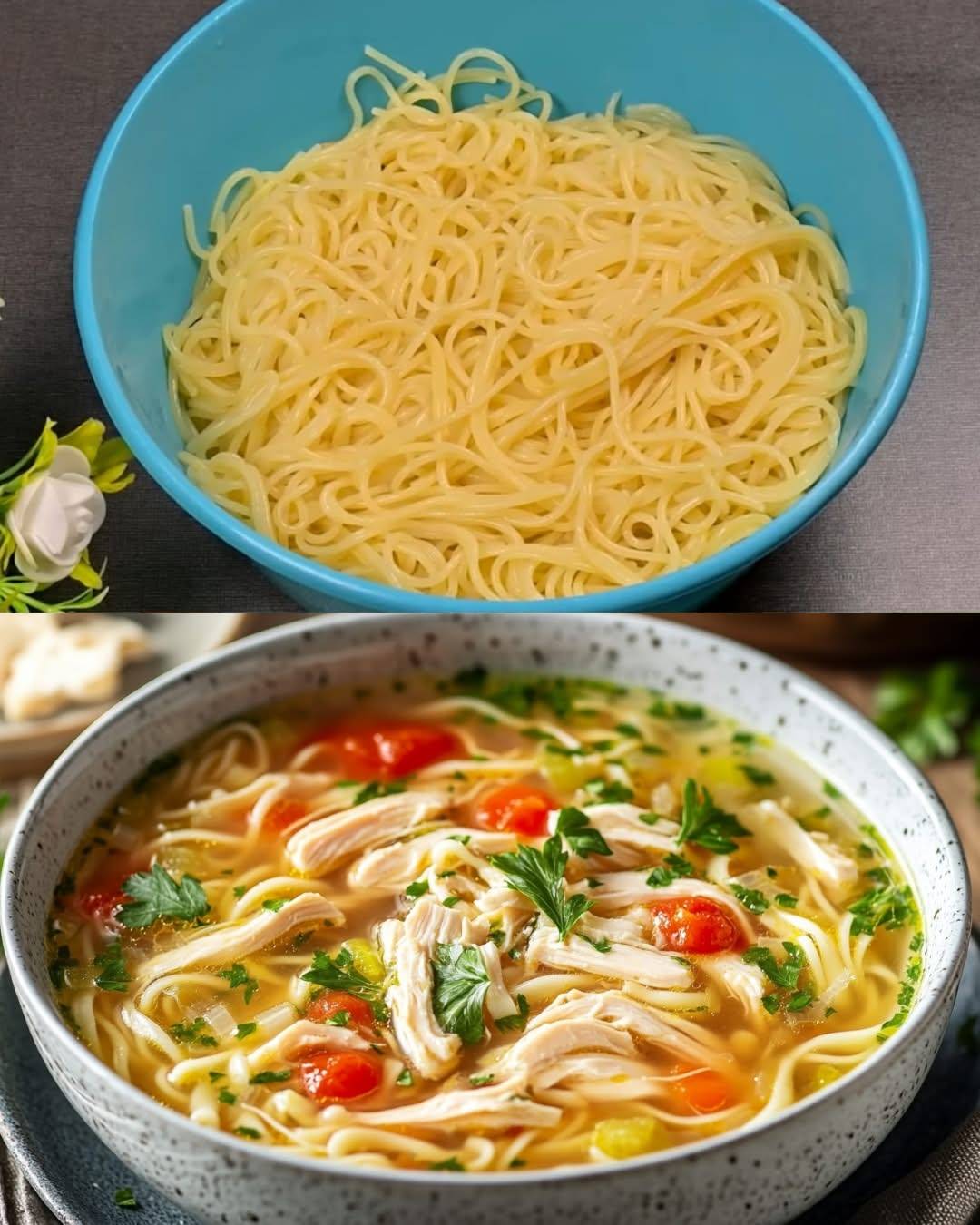 - 4 Tassen Hühnerbrühe