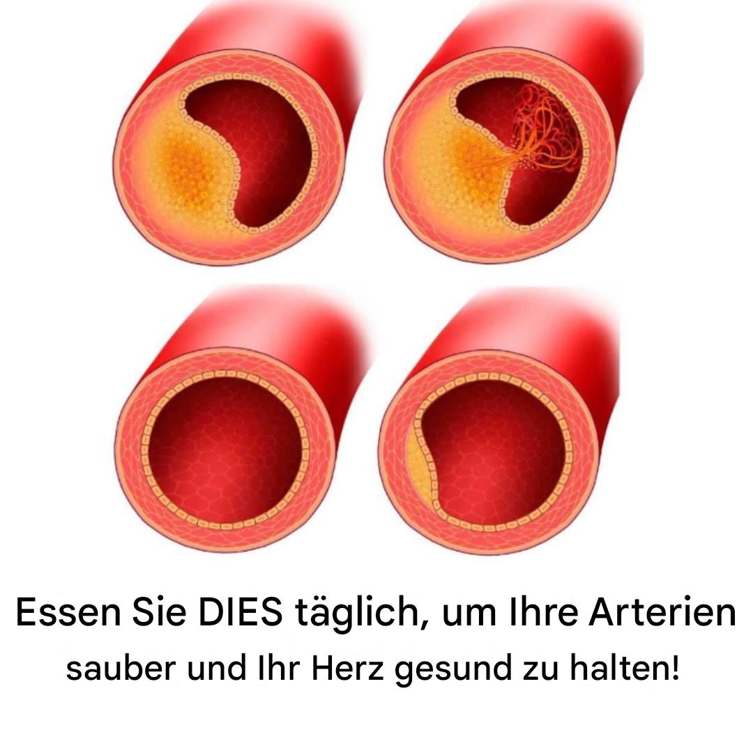 Lebensmittel mit einem hohen Anteil an gesättigten Fettsäuren, verarbeitetem Zucker und Chemikalien, Rauchen, übermäßiger Alkoholkonsum und Bewegungsmangel führen zu einer Verkleinerung der Arterien, da sich Ablagerungen an den Wänden ablagern. Dieser Zustand wird als Arteriosklerose bezeichnet – eine Verdickung der Arterienwände durch Plaquebildung – und ist ein Hauptrisikofaktor für Herzerkrankungen, Herzinfarkt und Schlaganfall.