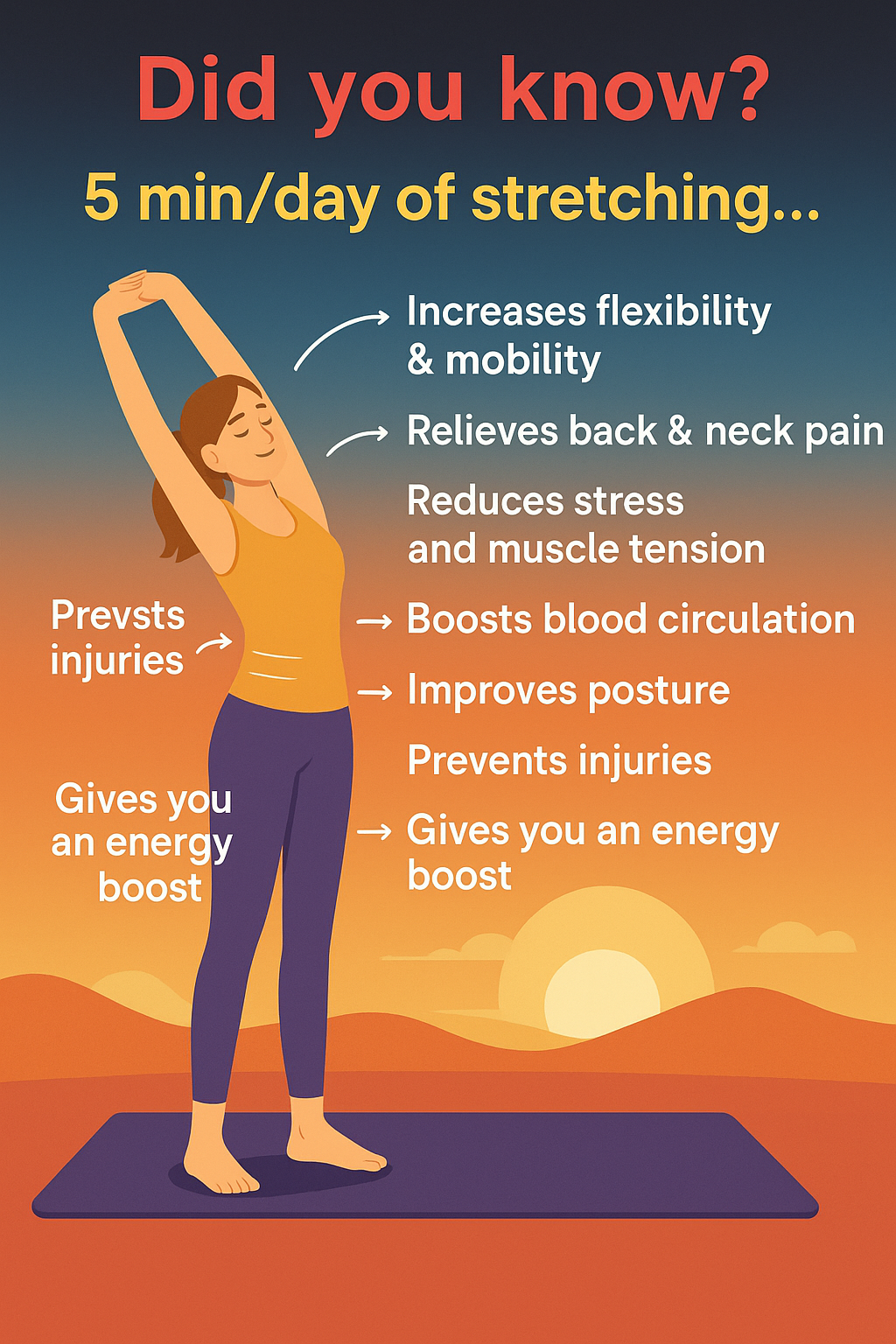 Beim Dehnen lockern Sie nicht nur Ihre Muskeln – Sie fördern auch die Durchblutung, lösen Verspannungen und helfen Ihrem Körper, sich nach stundenlangem Sitzen, Stehen oder Arbeiten wieder in Form zu bringen. Es ist, als würden Sie den Reset-Knopf für Körper und Geist drücken.