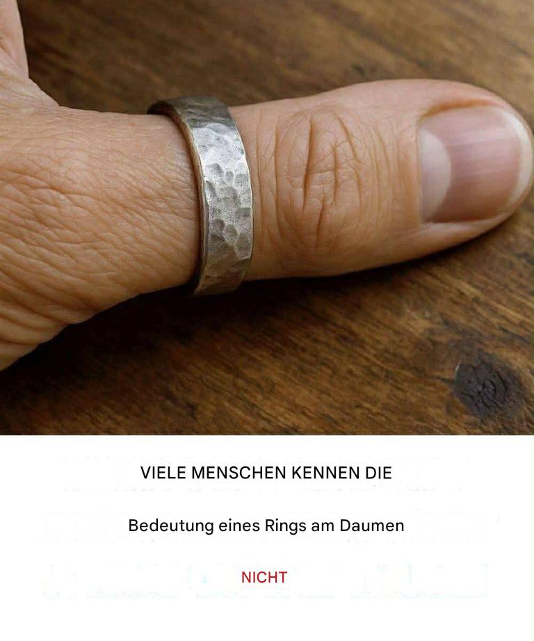 Der Daumen, der sich von den anderen Fingern abhebt, wird oft als Symbol für Unabhängigkeit und Selbstbestimmung gesehen. Das Tragen eines Rings an diesem Finger symbolisiert Stärke, Freiheit und ein starkes Gefühl von Individualität.