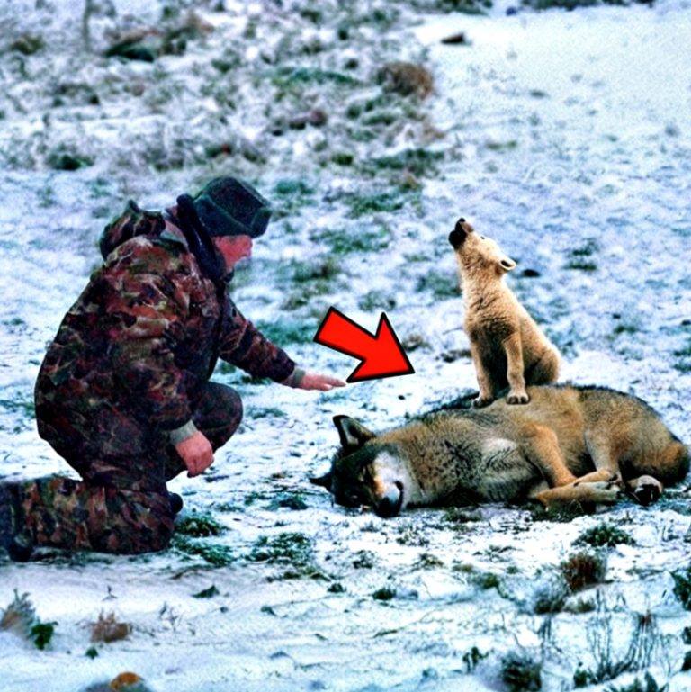 Auf einer Waldlichtung begegnete er einer riesigen Wölfin, die mit ihren Pfoten in einer Falle gefangen war und verzweifelt versuchte, sich zu befreien.