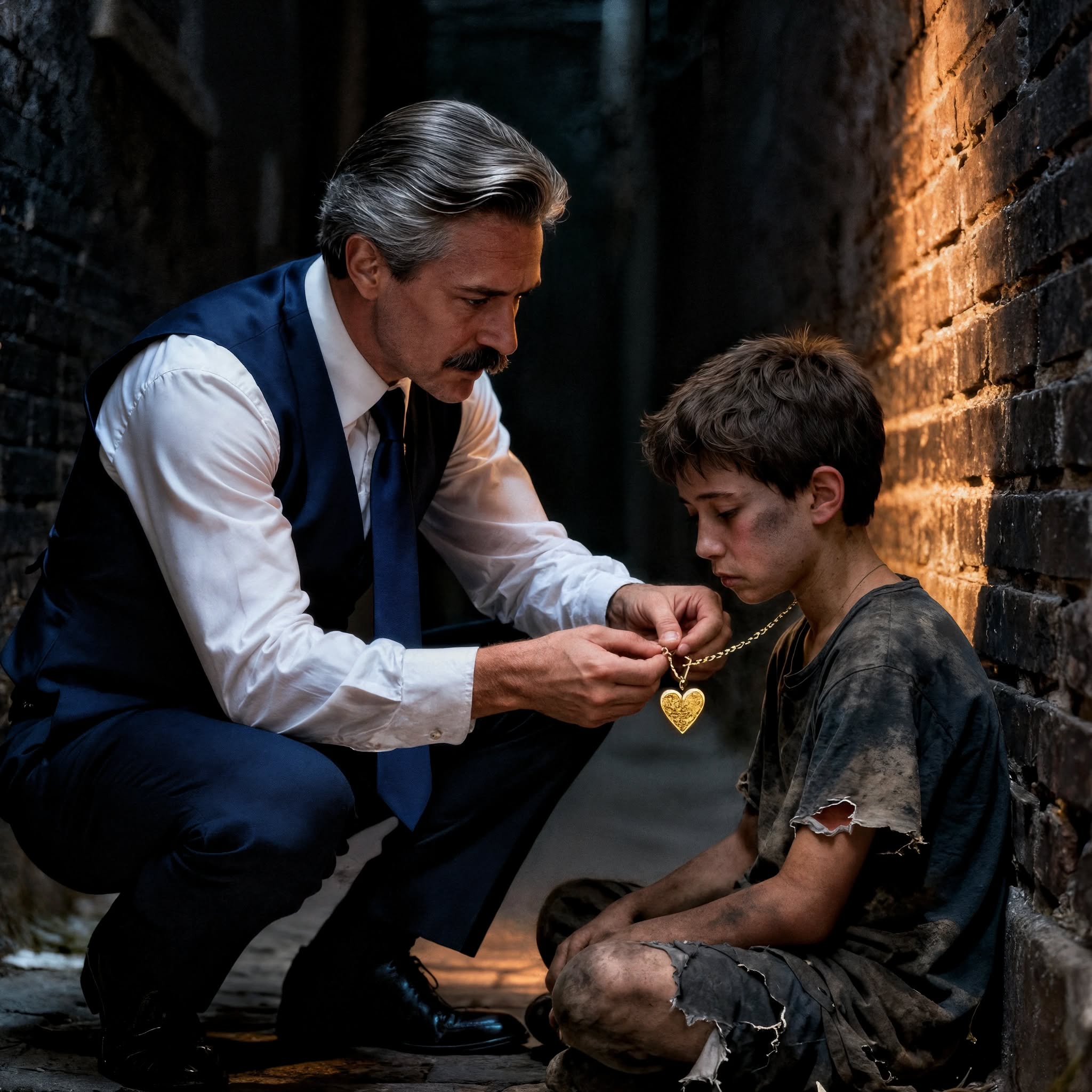 An einem eiskalten Abend, als er durch die Gasse hinter seinem Turm ging, um den Journalisten zu entkommen, erstarrte er plötzlich. Dort, neben einem Müllcontainer kauernd, stand ein kleiner Junge – barfuß, durchnässt und zitternd. Seine Kleidung war zerrissen, seine Hände aufgeschürft. Edward hätte einfach vorbeigehen können, doch ein Lichtschein umspielte den Hals des Kindes.