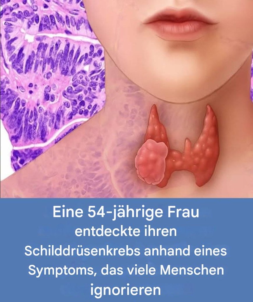 Manchmal sind es die leisen Signale unseres Körpers, die uns vor schwerwiegenden Erkrankungen warnen – doch gerade diese werden oft übersehen. Die Geschichte einer 54-jährigen Frau, die ihren Schilddrüsenkrebs nur durch einen kaum wahrnehmbaren Knoten am Hals entdeckte, ist ein eindrückliches Beispiel dafür.Manchmal sind es die leisen Signale unseres Körpers, die uns vor schwerwiegenden Erkrankungen warnen – doch gerade diese werden oft übersehen. Die Geschichte einer 54-jährigen Frau, die ihren Schilddrüsenkrebs nur durch einen kaum wahrnehmbaren Knoten am Hals entdeckte, ist ein eindrückliches Beispiel dafür.