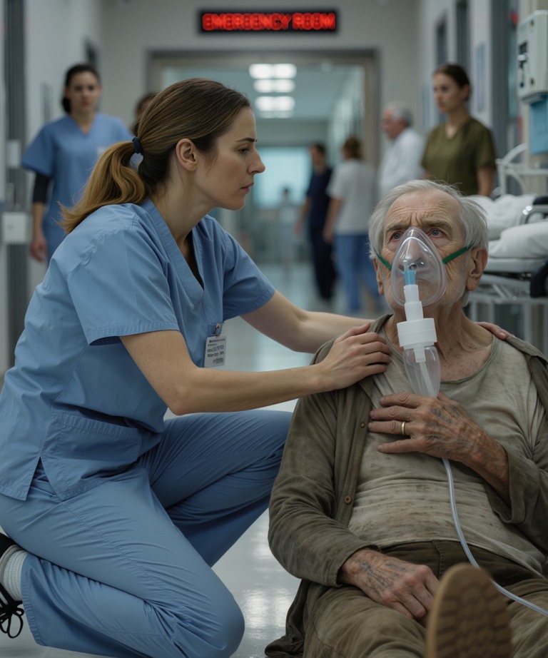 Ich ging den Flur der Notaufnahme entlang, als mir ein Mann auffiel, der durch die Tür stolperte. Sein Anblick ließ die Leute zurückschrecken – zerrissene Kleidung, verfilztes Haar, Schmutz an seinen Händen und der Straßengeruch, der die Krankenschwestern zu verunsicherten Blicken veranlasste.