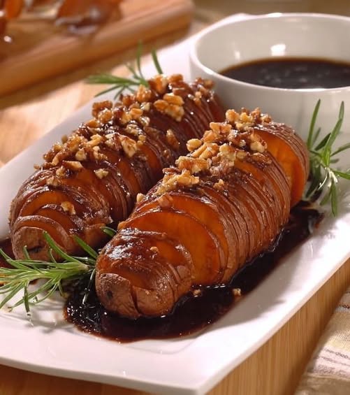 Diese karamellisierten Süßkartoffeln schmecken pur als Beilage hervorragend, aber Sie können sie auch mit folgendem servieren: