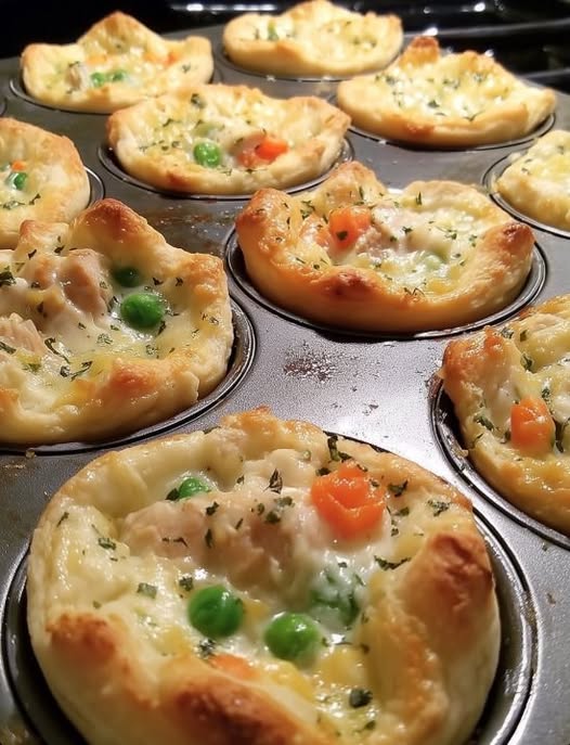 4. Die Hühnermischung in einzelne Förmchen oder Muffinformen füllen und diese schnell bis zum Rand füllen.