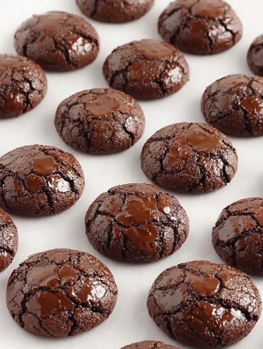 7. Lassen Sie die Kekse abkühlen, bevor Sie diese leckeren Schokoladen-Crinkle-Cookies genießen.