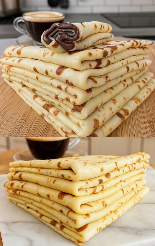 Servieren Sie die Crêpes kochend heiß, garniert mit Nutella, Marmelade, Zucker oder frischem Obst. 💕🤤