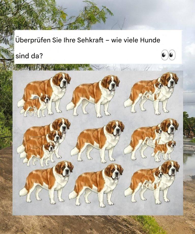 Wer genauer hinsieht, entdeckt zusätzliche Konturen, verschwommene Formen und sich überlappende Silhouetten, die nicht sofort ins Auge fallen. Manche Hunde scheinen mit anderen zu verschmelzen, manche sogar mit dem Hintergrund – genug, um die eigene Detailgenauigkeit auf die Probe zu stellen.