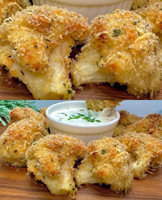 Begeben Sie sich mit diesen goldenen knusprigen Blumenkohlhäppchen auf ein kulinarisches Abenteuer, bei dem der einfache Blumenkohl in einen Gourmet-Genuss verwandelt wird. Umhüllt von einer knusprigen Parmesan-Panko-Kruste, gewürzt mit italienischen Kräutern und einem Hauch Knoblauch, sorgt jeder Bissen für eine köstliche Knusprigkeit, die zum zarten, gerösteten Blumenkohl im Inneren führt.