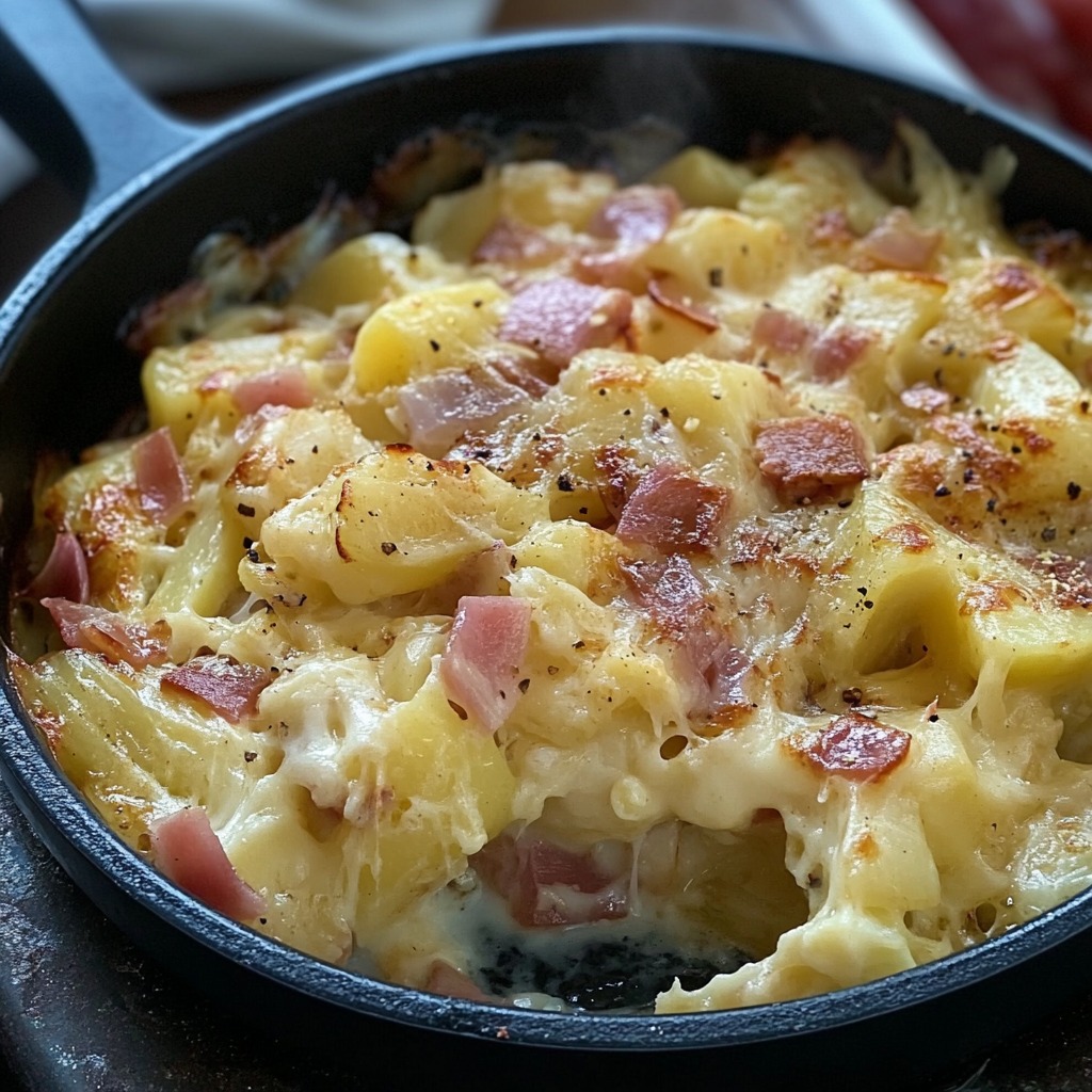 Dieses Rezept behält den ganzen Charme und Geschmack einer traditionellen Tartiflette – mit ihren schmelzenden Kartoffeln, dem knusprigen Speck, den süßen Zwiebeln und dem geschmolzenen Reblochon-Käse – aber in einer schnellen Version , ideal für Abende unter der Woche, stressfreie Wochenenden oder sogar ein spontanes Abendessen mit Freunden.