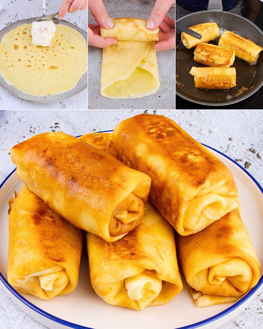 - Service: Die Crêpe-Rollen sind heiß zum Servieren bereit.