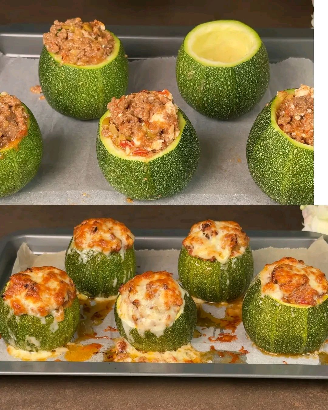 Diese gefüllte Zucchini aus dem Ofen mit Hackfleisch, Feta und Oliven ist ein köstliches, herzhaftes Gericht mit würzigem Hackfleisch, frischen Tomaten, Feta und aromatischen Kräutern . Perfekt gebacken und mit geschmolzenem Frischkäse überbacken, ist dieses Gericht eine nahrhafte und sättigende Mahlzeit .