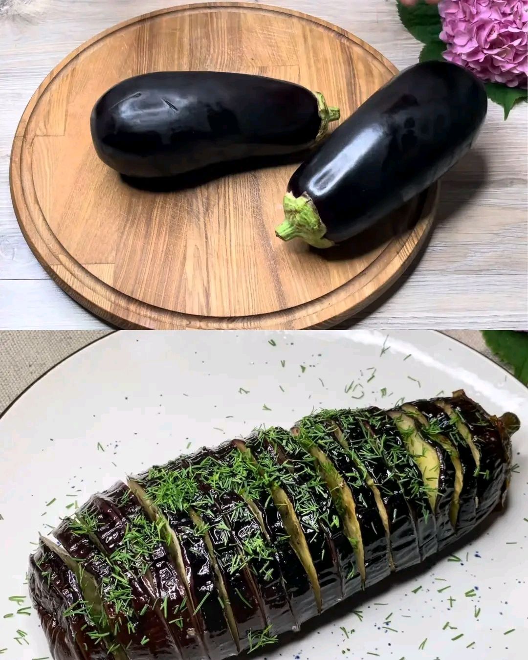Geröstete Auberginen mit Knoblauch-Kräutersauce sind ein einfaches, aber schmackhaftes Gericht, das jede Mahlzeit wunderbar ergänzt. Die Auberginen werden gesalzen, um überschüssige Feuchtigkeit zu entfernen, und anschließend mit einer reichhaltigen Mischung aus Knoblauch, Olivenöl und italienischen Kräutern bestrichen, bevor sie perfekt geröstet werden. Der letzte Schliff aus geschmolzener Butter und frischem Dill verleiht dem Gericht einen luxuriösen Touch und macht es perfekt für zwanglose Mahlzeiten und besondere Anlässe. Ob als Beilage zu gegrilltem Fleisch, als Teil einer Mezze-Platte oder pur mit knusprigem Brot – dieses Rezept für geröstete Auberginen wird schnell zu einem Favoriten in Ihrer Rezeptsammlung.