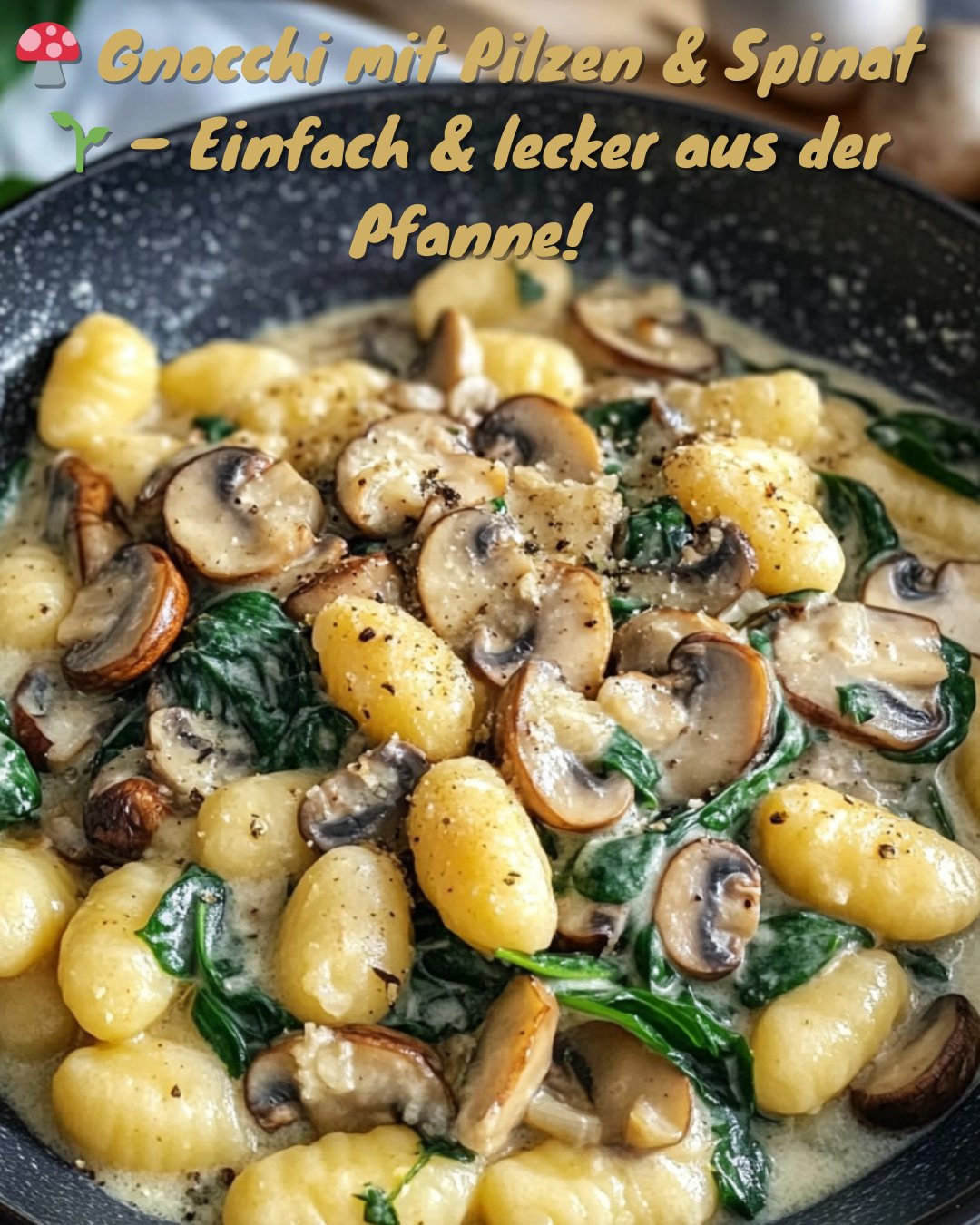 Ein schnelles, leckeres und gesundes Abendessen mit Gnocchi, frischen Pilzen und Spinat!