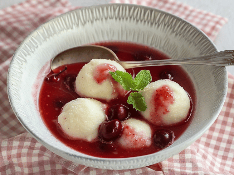 Himmlisch, erfrischend und unglaublich köstlich – dieses Rezept vereint zarte, fluffige Grießklöße mit einer fruchtig-süßen Kirschsuppe. Das perfekte Sommerdessert, das mit seiner Leichtigkeit und den erfrischenden Aromen alle Dessertliebhaber begeistert. Die Kombination aus cremigen Klößen und kalter Kirschsuppe macht dieses Dessert unwiderstehlich und bietet eine wunderbare Abwechslung für warme Tage!🛒 Zutaten für 4 Portionen: