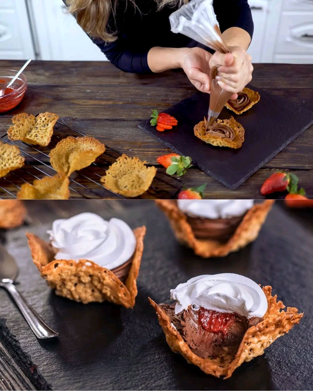 Die Magie dieses Desserts liegt in seiner Vielseitigkeit. Sie können die Füllung ganz nach Ihrem Geschmack anpassen – tauschen Sie die Erdbeermarmelade gegen Himbeer-, Aprikosen- oder sogar gewürzte Birnenmarmelade aus und wählen Sie eine Ganache aus weißer, Vollmilch- oder Zartbitterschokolade. Das Konzept des Haferkeksbechers ist zeitlos, denn Haferflocken selbst sind eine allseits beliebte Zutat, und ihre dezente Süße und herzhafte Textur passen gut zu fast jedem Topping. Dieses Dessert verbindet Nostalgie mit Eleganz und eignet sich perfekt sowohl für zwanglose Zusammenkünfte als auch für festliche Anlässe.