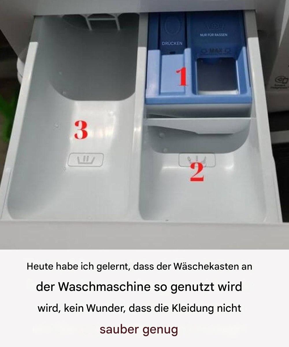 Heute habe ich gelernt, wie man das Waschmittelfach einer Waschmaschine richtig benutzt – kein Wunder, dass meine Kleidung nicht sauber herauskam