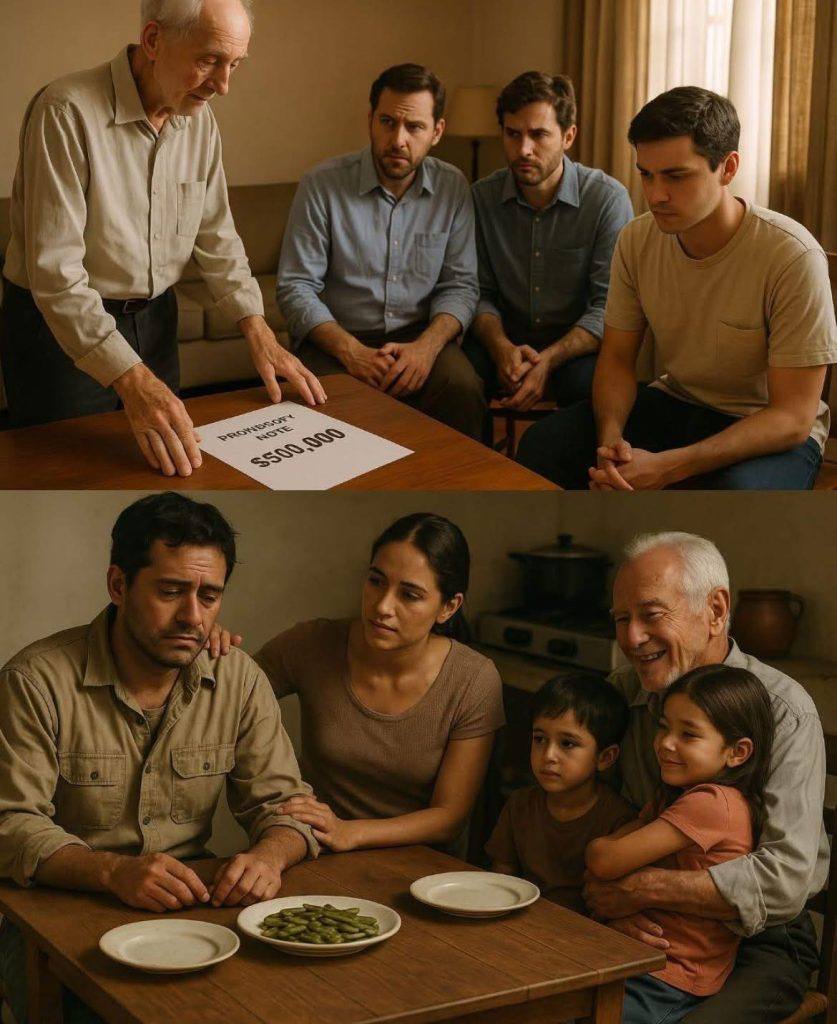 Als mein Vater aus dem Krankenhaus zurückkam, schwieg er. Er ging langsam, gebeugter, als ich ihn in Erinnerung hatte, und hatte graues Haar. Schweigend legte er ein einzelnes Dokument vor uns auf den Tisch. Es war ein Schuldschein über 900.000 Dollar, ausgestellt von ihm als Schuldner. Meine beiden älteren Brüder und ich starrten verblüfft auf das Dokument. Lange Zeit war nur das Ticken der Wanduhr zu hören. Mein älterer Bruder begann das Gespräch. Er seufzte laut und nickte. „Ich kann nicht, Vater. Mein ganzes Geld geht für die Studiengebühren meiner Kinder drauf. Du weißt, wie hoch die Kosten sind.“ Mein zweiter Bruder griff das Thema sofort auf. „Ich habe vor kurzem einen Baumarkt eröffnet. Mir fehlt derzeit das Kapital. Ich kann dieses Projekt nicht übernehmen.“ Es dient nur zu Demonstrationszwecken.“ Beide Brüder wandten sich mir zu – dem jüngsten von drei Kindern, frisch verheiratet und mit der Hypothekentilgung beschäftigt. Meine Frau und ich stellten uns eine bescheidene, aber komfortable Zukunft vor. Doch als ich meinen Vater mit seinen schwachen Schultern und müden Augen sah, erkannte ich meine Pflicht. „Ich nehme es an“, murmelte ich mit zitternder Stimme. Meine Brüder sahen mich überrascht an. Doch ein schwaches Lächeln umspielte die Lippen meines Vaters. Ich schnappte mir einen Stift, schrieb einen Brief und steckte ihn in meine Aktentasche. In dieser Woche hatte ich ihm den Umzug zu mir ermöglicht. Wenn er schon eine solche Last tragen musste, wollte ich ihn in meiner Nähe haben – ich wollte mich persönlich um ihn kümmern. Das Leben wurde unglaublich schwierig. Ich arbeitete von morgens bis spät in die Nacht, nahm Nebenjobs an und tat alles, um meinen finanziellen Verpflichtungen nachzukommen. Es gab Abende, an denen eine Mahlzeit nur aus einem Teller kochender Kaktusfeigen oder Bohnen bestand. Meine Frau kaufte sich keine Kleidung mehr. Sie verkaufte sogar das neue Motorrad, das wir uns ein paar Monate zuvor mit großer Freude gekauft hatten. Wir sparten, sparten und übten uns in Genügsamkeit. Trotzdem gab es kleine Segnungen. Nur zur Veranschaulichung. Als ich müde und verschwitzt nach Hause kam, sah ich meinen Vater im Hof sitzen, mit meinen Kindern auf dem Schoß, vertieft in eine Geschichte.
