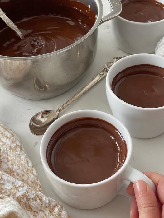 5. Sobald die heiße Schokolade glatt und dickflüssig ist, vom Herd nehmen und zum Servieren in Tassen füllen.