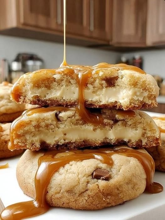 10. Lassen Sie die Kekse vor dem Servieren abkühlen und genießen Sie den weichen, mit Karamell gefüllten Kern!