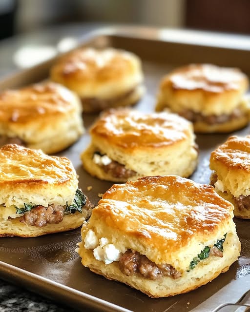 Südstaaten-Wurstbiskuits mit Spinat und Feta