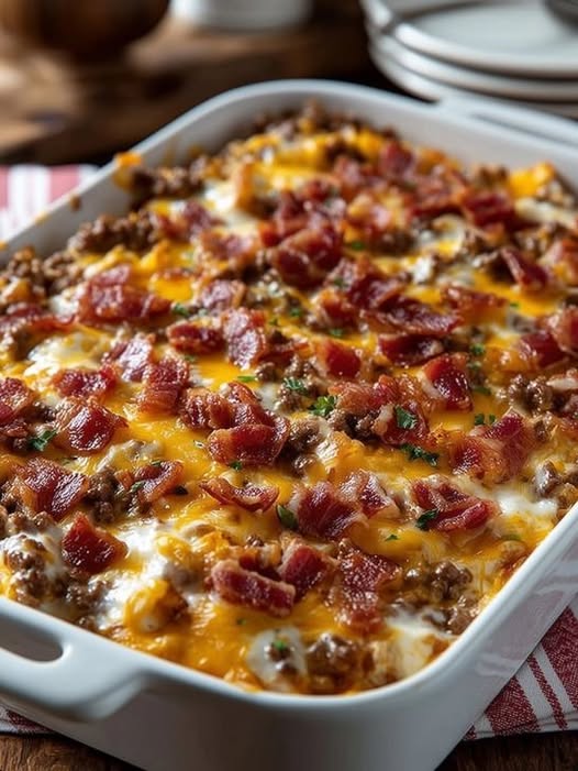 Lassen Sie uns den Prozess der Zubereitung dieses köstlichen kohlenhydratarmen Bacon-Cheeseburger-Auflaufs gemeinsam durchgehen: