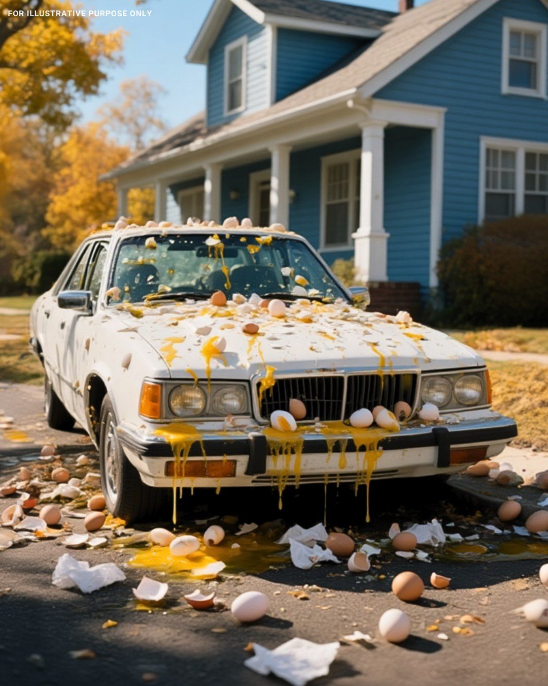 Als ich am Morgen vor Halloween aus dem Haus ging, war mein Auto mit Eigelb und Toilettenpapier bedeckt.