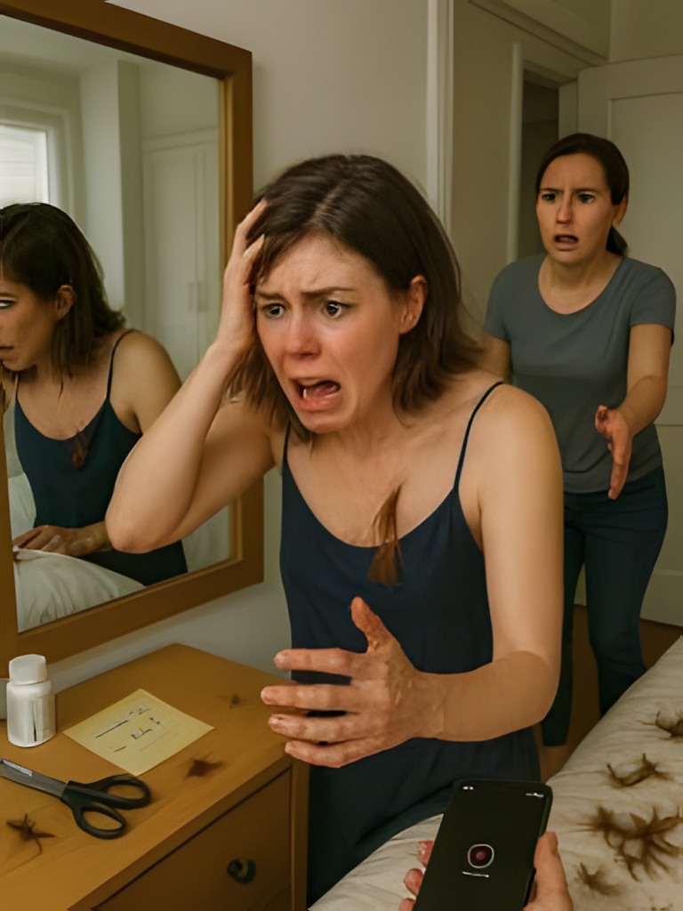Ich erwachte mit einem scharfen, ungewohnten Geruch – metallisch, bitter – und einem beunruhigenden Gefühl im Nacken, das mir den Magen umdrehte. Der Spiegel bestätigte meine Schrecken. Mein Haar – einst lang, rotbraun und sorgfältig gepflegt – war grob in struppige Locken geschnitten. Einen Moment lang dachte ich, ich wäre in mein eigenes Bett übergefallen, vielleicht sogar ausgeraubt worden.
