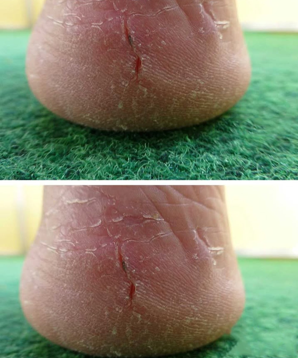 Rissige Fersen entstehen, wenn die dicke Haut an den Fersen extrem austrocknet und ihre Elastizität verliert. Der ständige Druck beim Stehen oder Gehen kann dazu führen, dass diese trockene Haut noch weiter einreißt. Da die Haut an der Ferse von Natur aus dicker ist, ist sie auch eine andere Körperstelle, die sie besonders dazu neigt, einzureißen, wenn sie austrocknet oder hart wird.