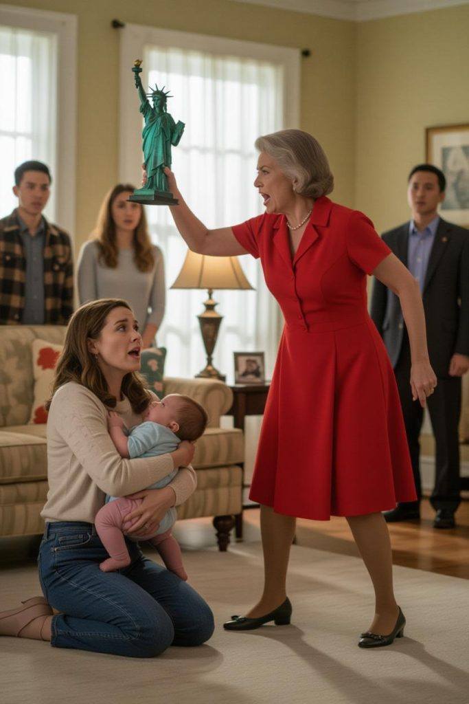 Als meine Mutter die metallene Freiheitsstatue hochhob und sie mir auf den Kopf fallen ließ, empfand ich keinen Schmerz, nur Unglauben. Ich hielt meine Tochter in den Armen und schützte sie vor denselben Händen, die einst mich gehalten hatten. Blut trübte meine Sicht, aber ich konnte nur denken: „Wie konnte aus Liebe so etwas werden?“ In dieser Nacht verwandelte sich das Zuhause, das ich voller Hoffnung aufgebaut hatte, in einen Gerichtssaal des Verrats, und die Wahrheit, die ans Licht kam, zerstörte alles.