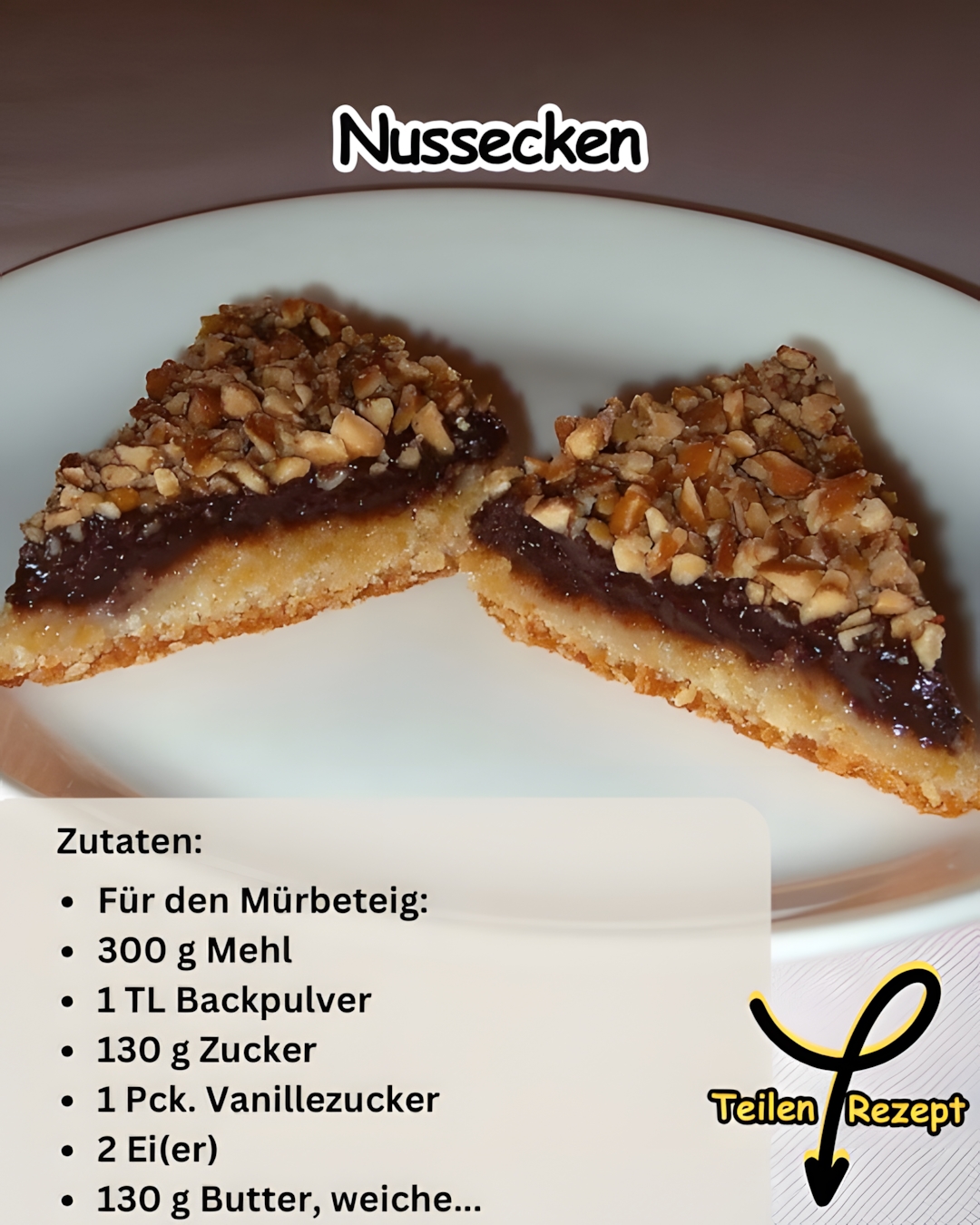 Nussecken June 20, 2025 by articles Zutaten: Für den Mürbeteig: 300 g Mehl 1 TL Backpulver 130 g Zucker 1 Pck. Vanillezucker 2 Ei(er) 130 g Butter, weiche Fett und Mehl für das Blech Zum Bestreichen: 6 EL Aprikosenkonfitüre Für den Belag: Wenn du weiterlesen möchtest, klicke auf “Nächste→” ⬇️⬇️ Nächste→ Leave a Comment Cancel replyCommentName Email Website Save my name, email, and website in this browser for the next time I comment.