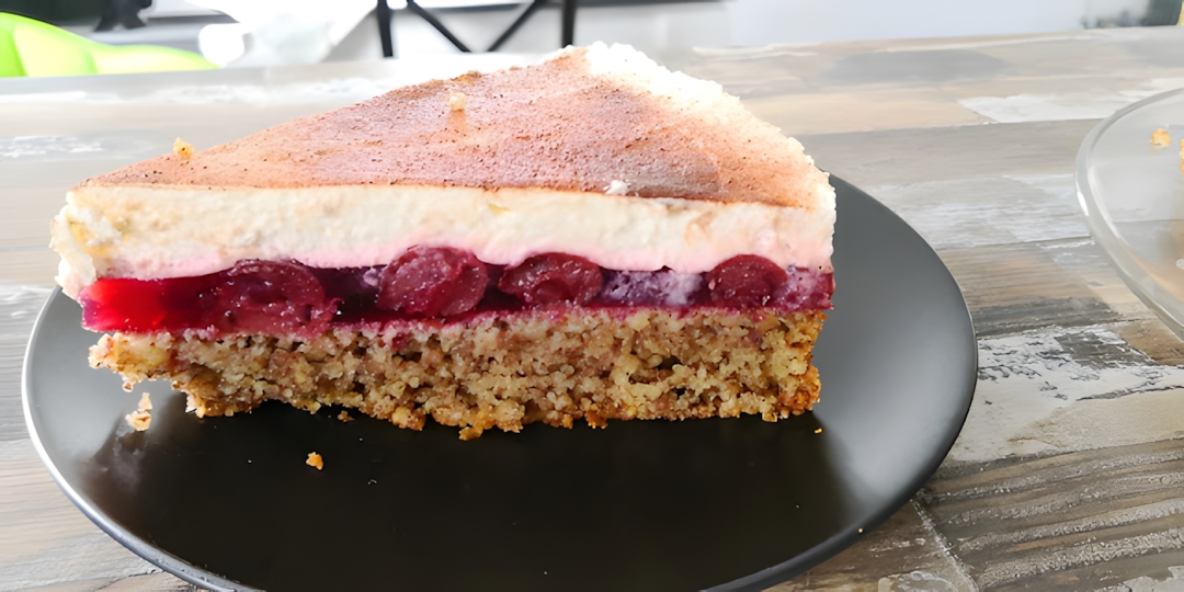 Omas saftiger Nuss-Kirsch-Kuchen mit Sahne-Joghurt-Decke