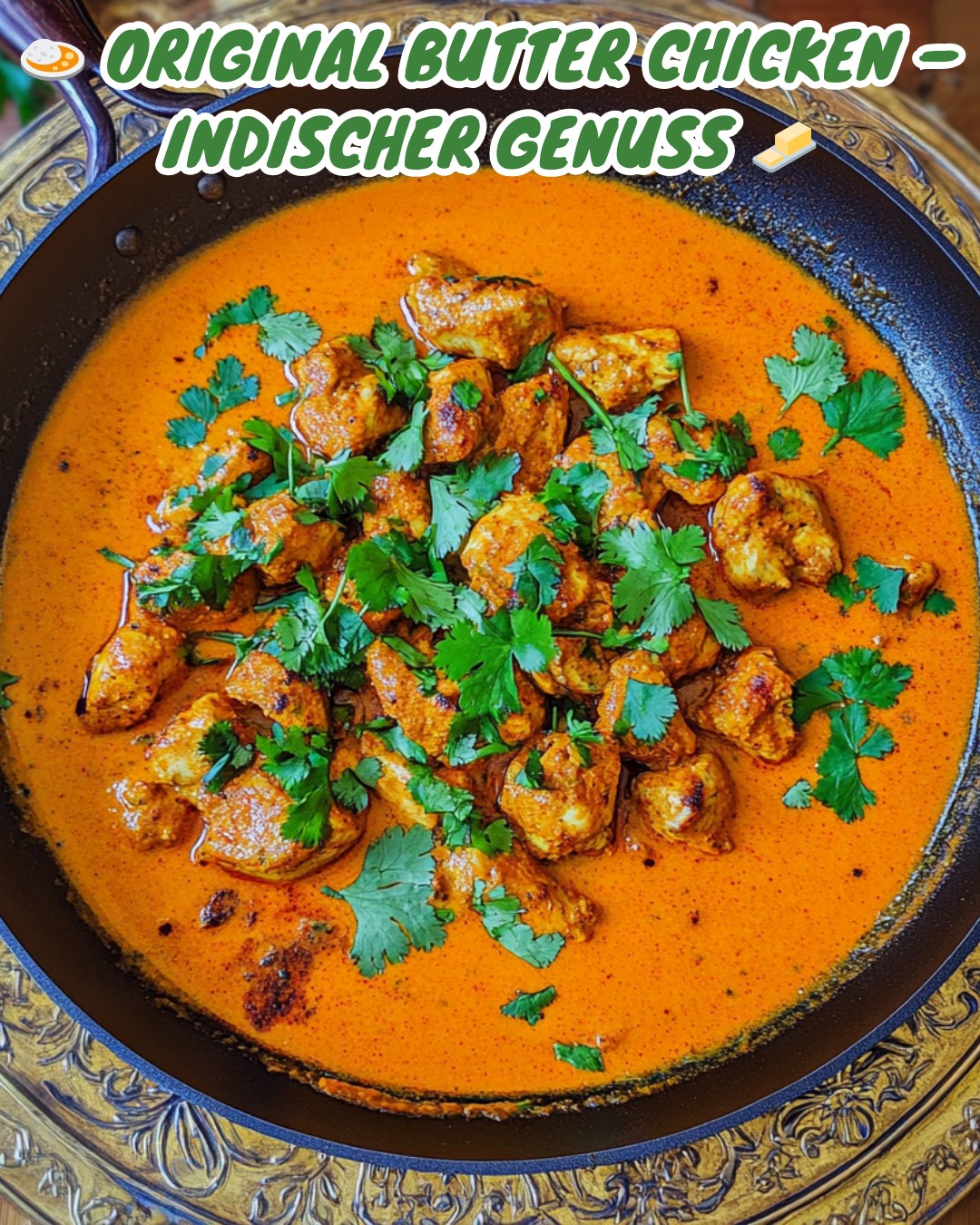 Cremiges Hühnchencurry mit Gewürzen, das auf der Zunge zergeht und perfekt zum Naan passt.