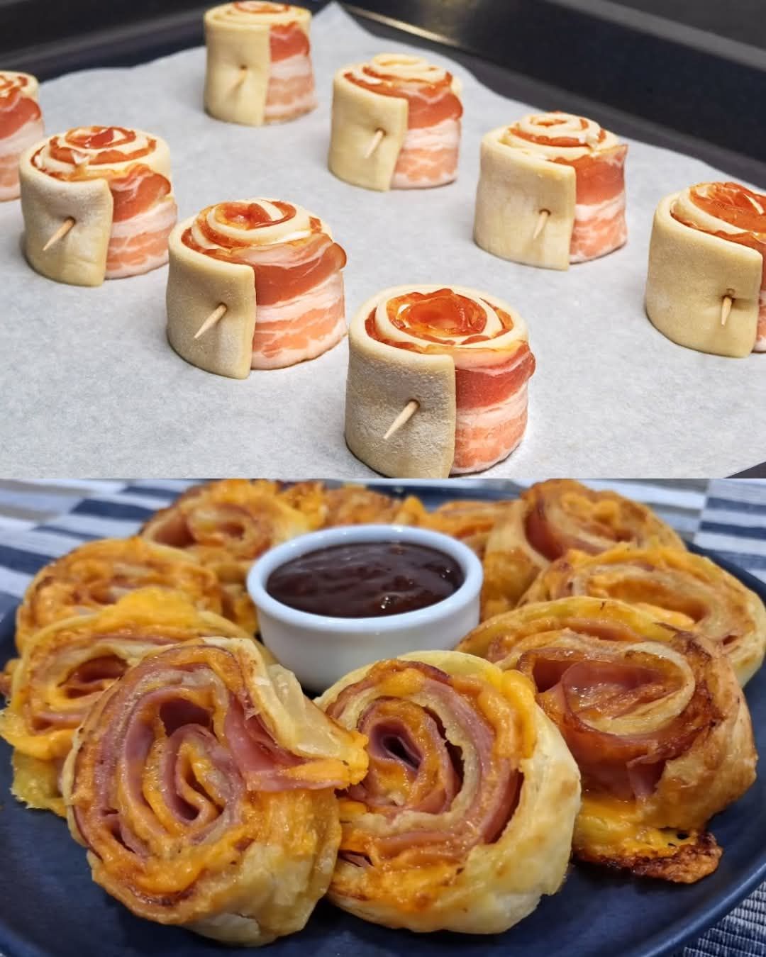 Pikante Schinken-Käse-Blätterteig-Häppchen sind ein köstlicher und vielseitiger Snack, der sich perfekt für jeden Anlass eignet – vom gemütlichen Beisammensein bis zur eleganten Party. Mit ihrer blättrigen, goldbraunen Blätterteigkruste und der herzhaften Füllung aus Schinken, Käse und cremigem Schmand (einer Art Sauerrahm) bieten diese Häppchen mit jedem Bissen eine wahre Geschmacksexplosion. Die Kombination aus Schinken und Käse ist zeitlos, während der Schmand für eine reichhaltige, cremige Textur sorgt, die den Gesamtgeschmack veredelt. Einfach zuzubereiten und unwiderstehlich lecker, werden diese Blätterteig-Häppchen garantiert zum Lieblingsstück für Sie und Ihre Gäste.