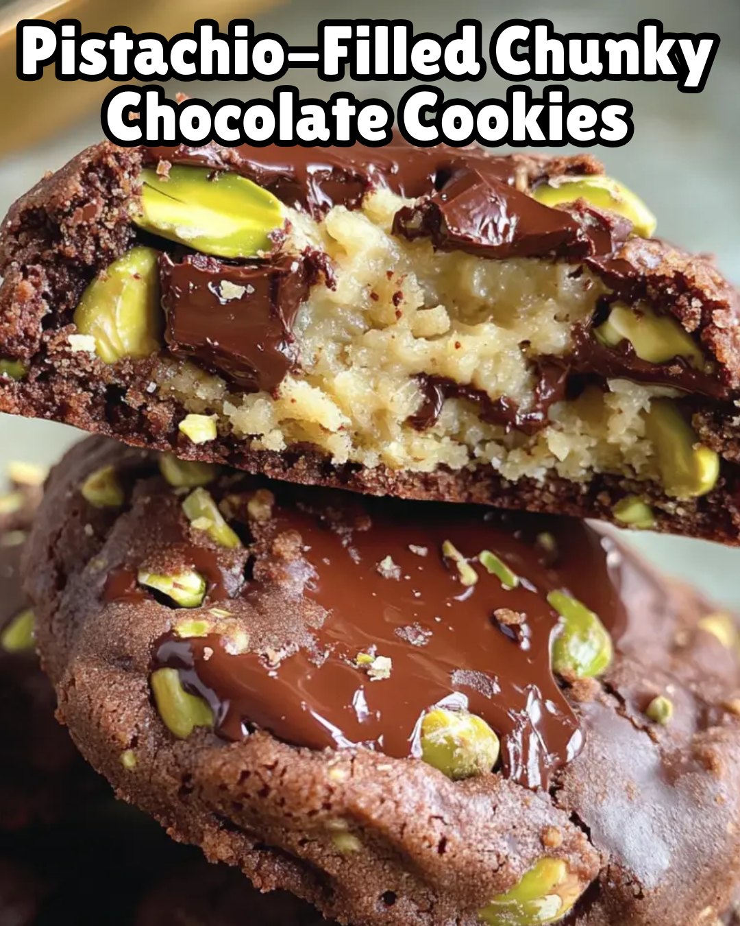 Diese köstlichen Kekse vereinen einen reichhaltigen Schokoladenteig mit einer cremigen Pistazienfüllung – jede Biss ist ein Geschmackserlebnis voller Kontraste und Texturen.