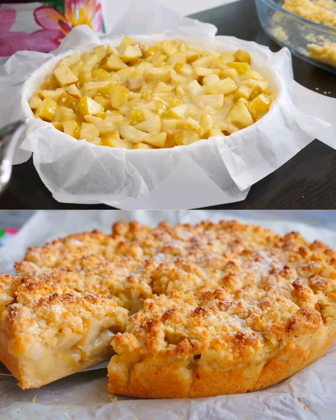 Dieser Apfel-Vanille-Puddingkuchen ist ein köstliches Dessert, das die Süße von Äpfeln mit einem krümeligen, buttrigen Teig verbindet. Der Grieß in der Apfelfüllung verleiht ihm eine herrliche Textur, und der Puderzucker verleiht ihm den perfekten letzten Schliff. Er ist ein toller Leckerbissen für jeden Anlass, egal ob mit einer heißen Tasse Tee oder Vanilleeis.