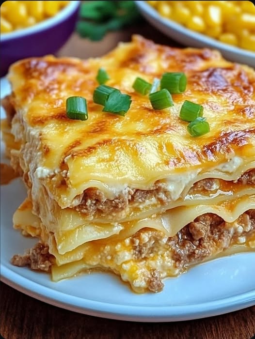 Seine mexikanische Rindfleischlasagne ist ein köstliches und beliebtes Gericht aus mehreren Schichten Tortillas , gewürztem Hackfleisch , Bohnen, Mais und reichlich Käse. Es ist ein einfacher und aromatischer Auflauf, perfekt für das Abendessen unter der Woche oder für gemütliche Stunden. Die Kombination klassischer mexikanischer Zutaten ergibt ein wohltuendes Gericht, das jeder lieben wird.