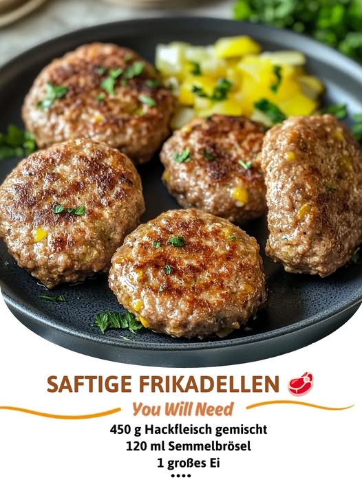 Saftige Frikadellen, perfekt für jedes Essen! Mit einer Mischung aus gemischtem Hackfleisch, fein gehackten Zwiebeln, Semmelbröseln und aromatischen Gewürzen bereiten Sie köstliche Frikadellen zu. Die Zwiebeln werden zunächst angebraten, um ein intensives Aroma zu erzielen. Danach wird alles zu einer geschmeidigen Masse geknetet, Frikadellen geformt und in der Pfanne goldbraun gebraten. Ein einfaches, aber unglaublich schmackhaftes Gericht, das jeder lieben wird!