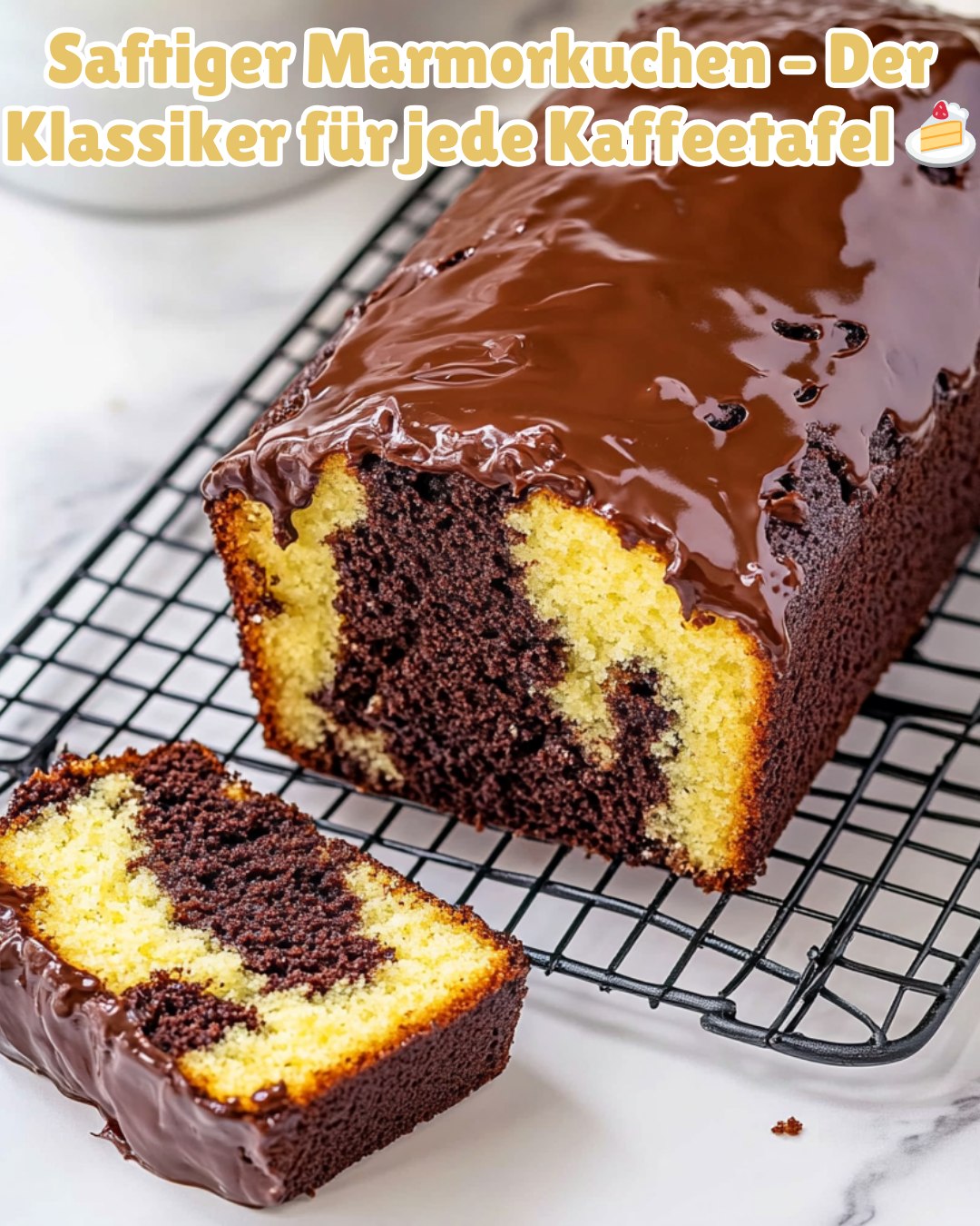 Lockerer Marmorkuchen mit perfekter Marmorierung und köstlicher Schokoladenglasur – wie von Oma gebacken!