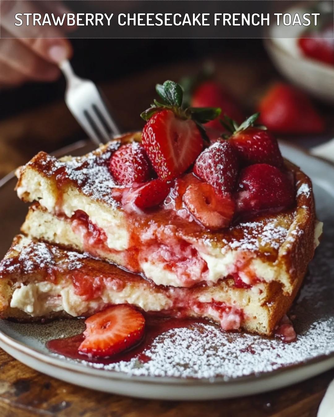 Diese köstliche French Toast-Kreation ist gefüllt mit einer cremigen Cheesecake-Mischung und frischen Erdbeeren – perfekt für ein besonderes Frühstück oder Brunch!