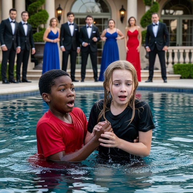 Die behinderte Tochter eines Millionärs ertrank in einem Swimmingpool, und nur der afroamerikanische Sohn des Hausmädchens sprang hinein, um sie zu retten. Doch was nach dieser Heldentat geschah, veränderte alles für immer. Tiago Santos’ Sprung in den kristallklaren Pool der Whmmore-Villa hallte wie ein Schuss durch die angespannte Stille jenes Samstagnachmittags. Unter den Augen von 40 hochkarätigen Gästen raste der 17-Jährige atemlos und mit verzweifelter Entschlossenheit durch das Wasser auf Isabellas schlaffen Körper zu und sank langsam in ihren Wasserrollstuhl.