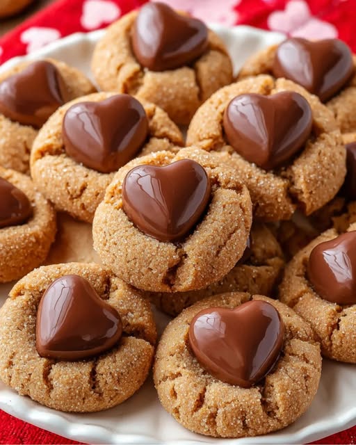 Lockere Erdnussbutterkekse mit zartschmelzenden Schokoladenherzen – ein süßer Genuss für jeden Anlass.