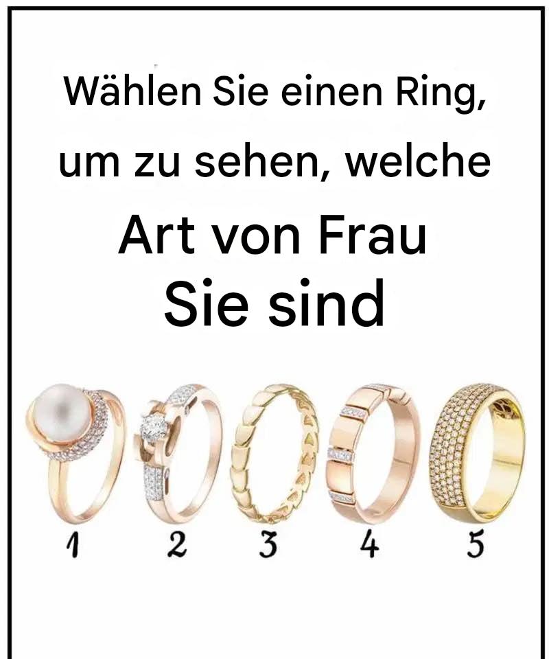 Heute lade ich Sie ein, etwas Schlichtes und doch Aufschlussreiches auszuprobieren. Schauen Sie sich die fünf unten beschriebenen Ringe an. Denken Sie nicht zu lange darüber nach. Achten Sie einfach darauf, welches Ihr Herz berührt. Der Ring, den Sie wählen, könnte etwas Bedeutungsvolles über Sie als Frau verraten.